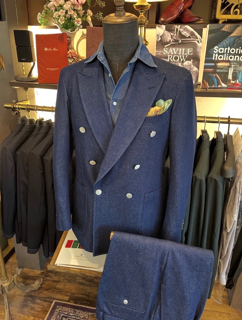 カジュアル素材の代表格であるデニム生地を使用し、クラシックな仕立てで構築したデニムオーダースーツのご紹介です。