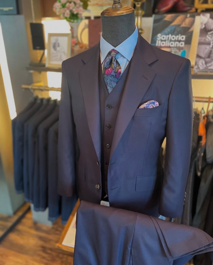 スリーピースで仕立て、ディテールやフィッティングは至ってクラシックです。