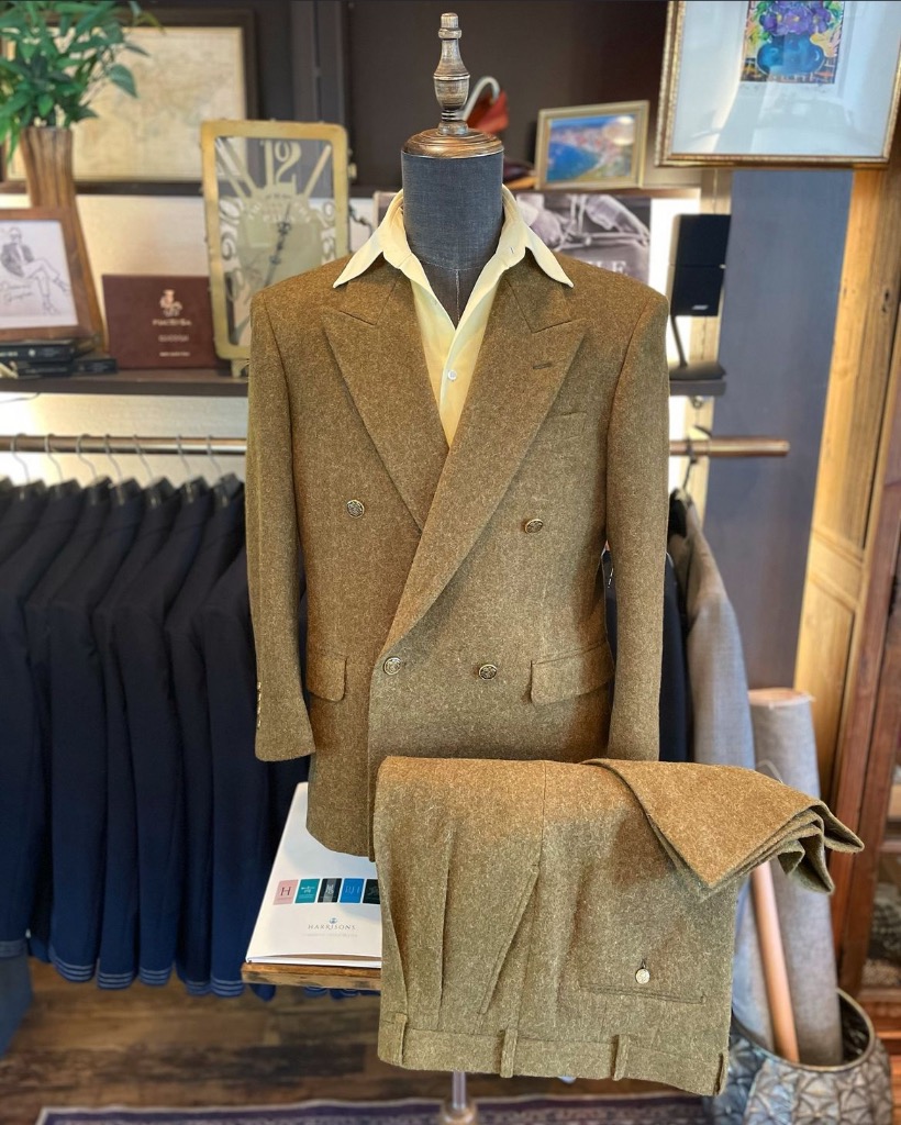 画像のように、4B下掛けのダブルブレストにローゴージといったクラシックに仕立てるのも粋です。