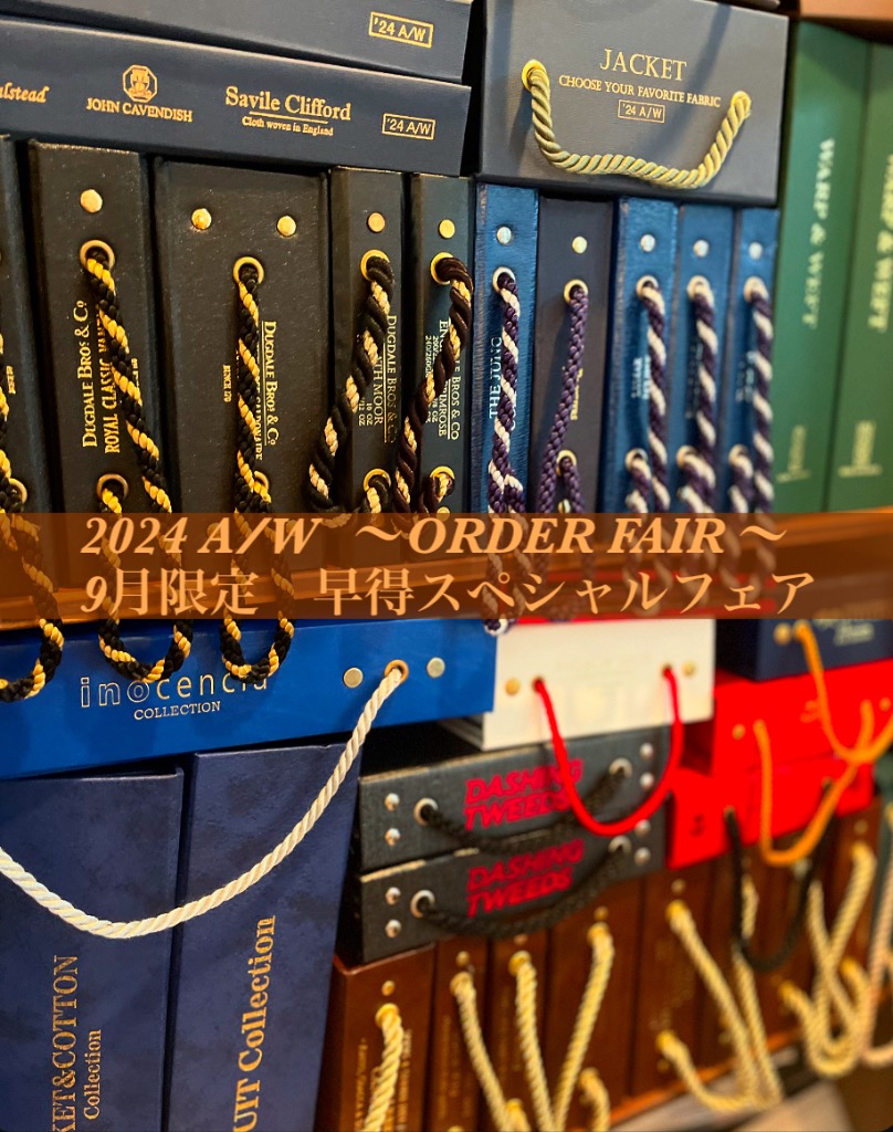 なかなか秋冬のお洋服を考えるまでに至らない方が多いと思います。そうしますと10月〜12月にかけてのご注文が多くなり、納期に影響がでてしまう可能性がある為、9月中に是非秋冬物をお早めに準備いただけたらと思い今回こちらのフェアを開催させていただきます。