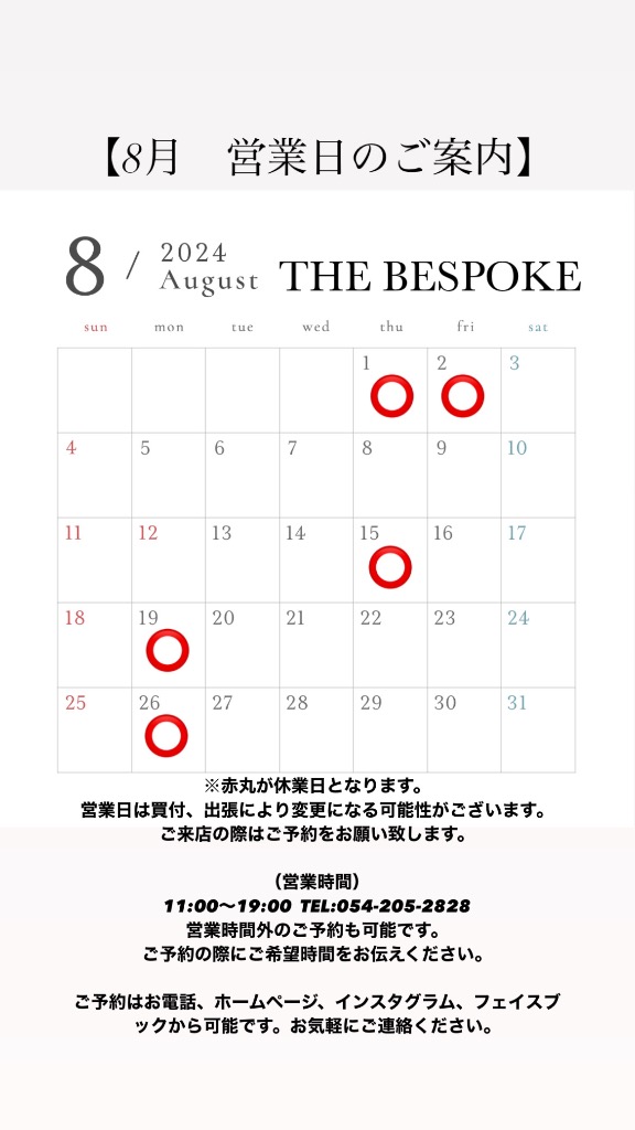 8月 営業日のご案内