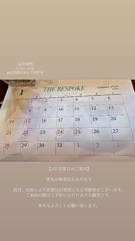 1月 営業日のご案内