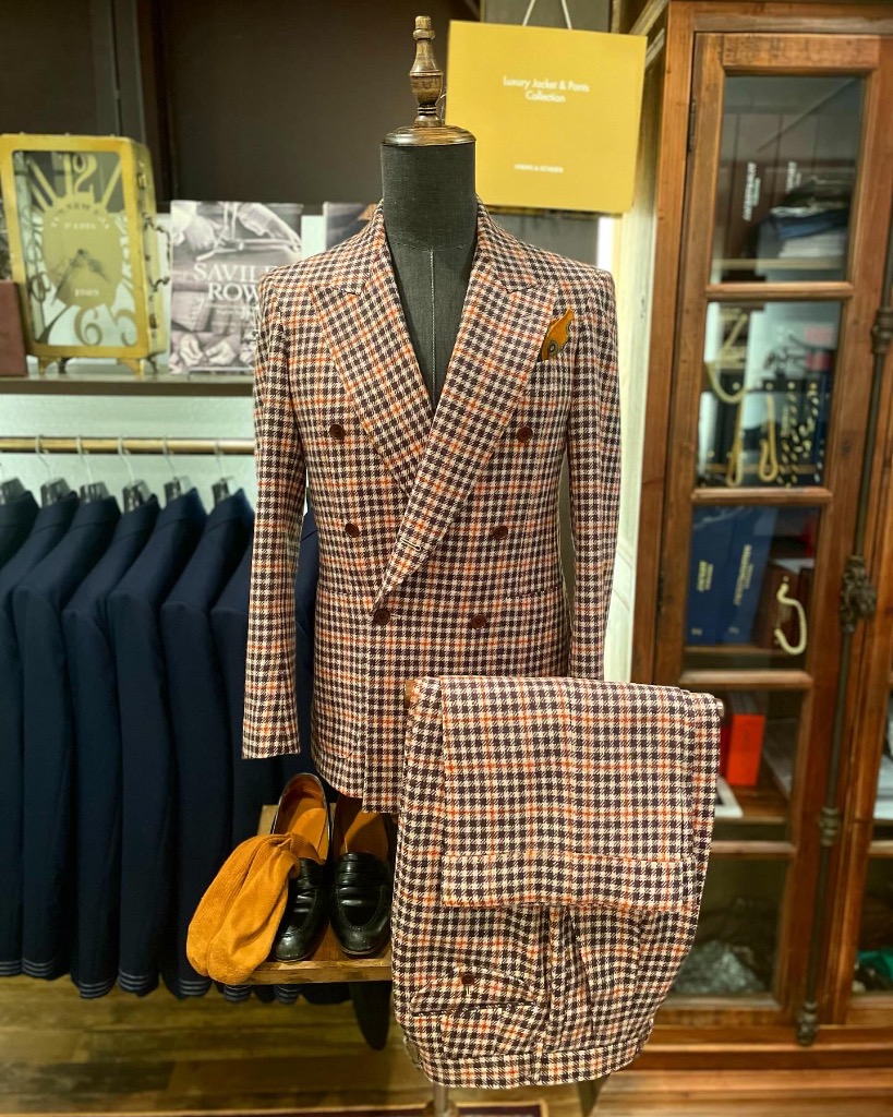 MARLING & EVANS(マーリン&エヴァンス)のツイードガンクラブチェックにて仕立てた1着。