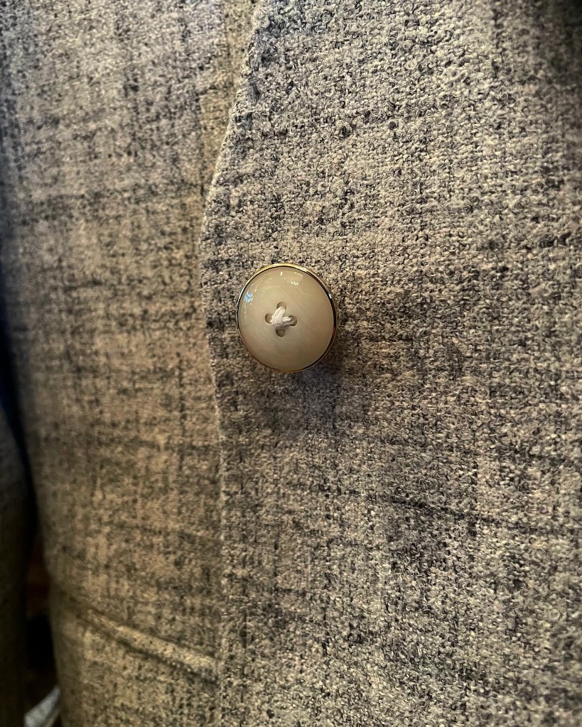 ダブル6つボタンの下掛け段返りというコテコテ仕様笑