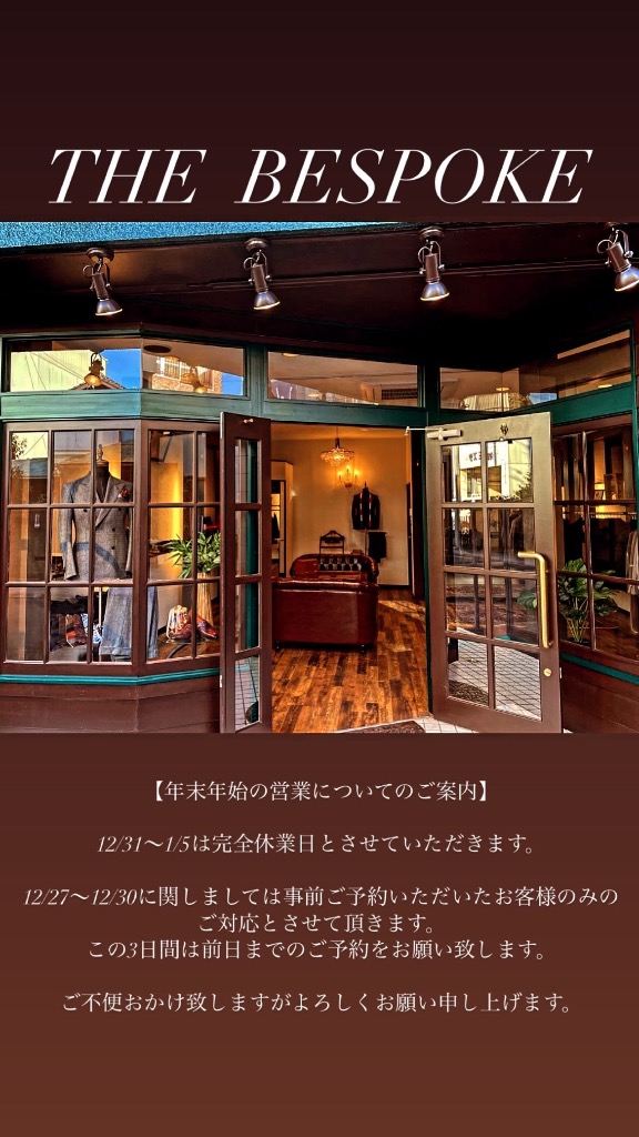 12/27〜12/30の3日間につきましては事前ご予約いただいたお客様のみのご対応とさせていただきます。