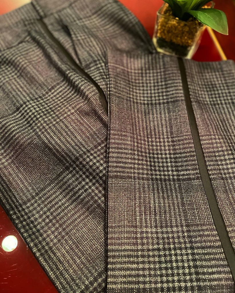 ブラック×ホワイトの比較的大きめなグレンプレイドに大きく入ったブラックのオーバーペーンがとても都会的な印象で