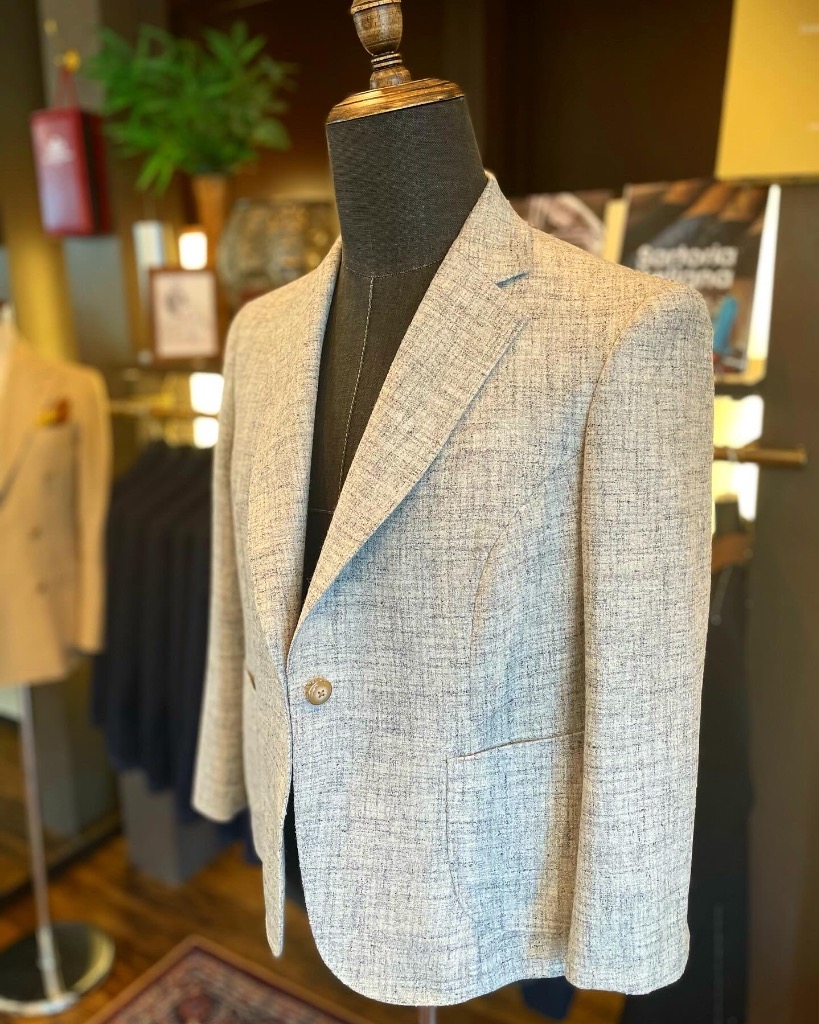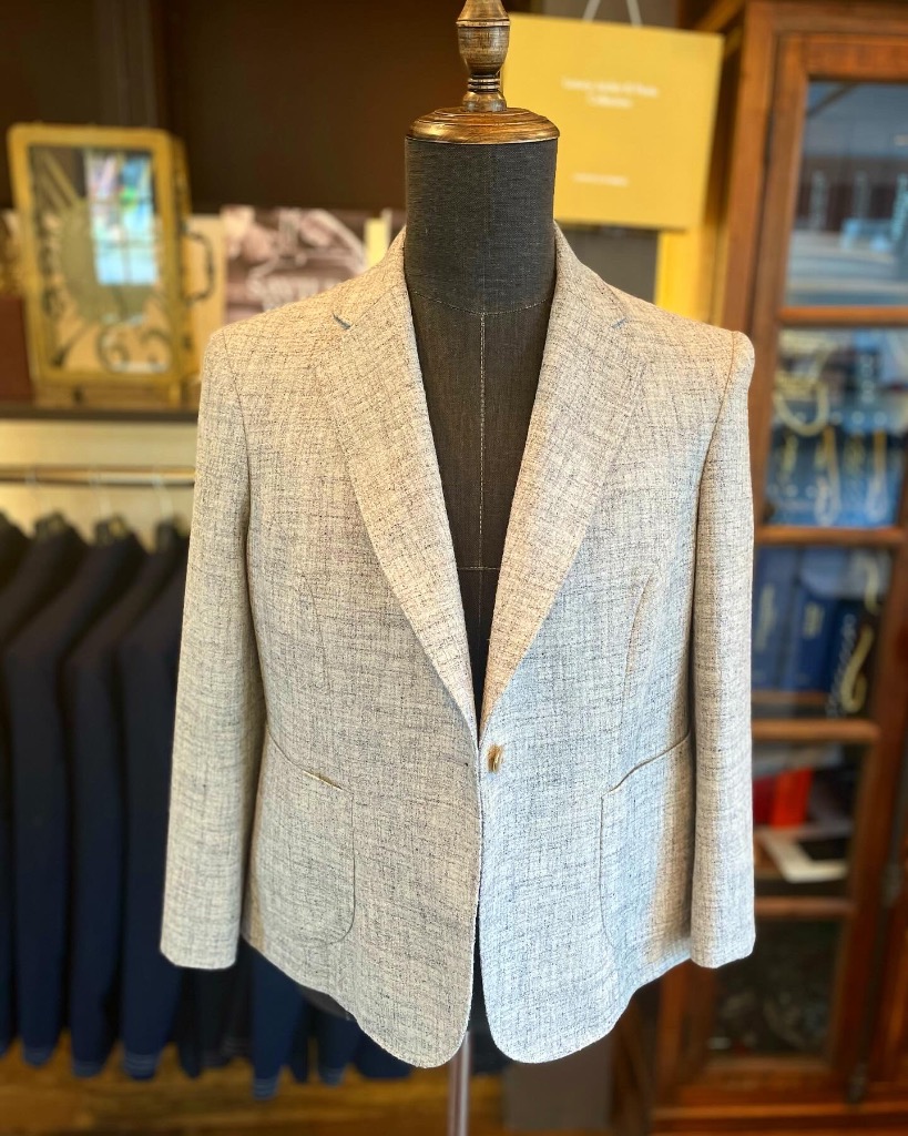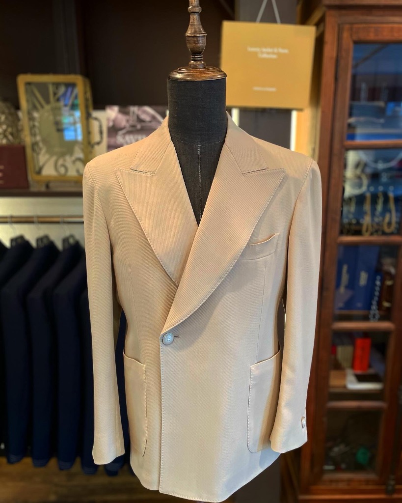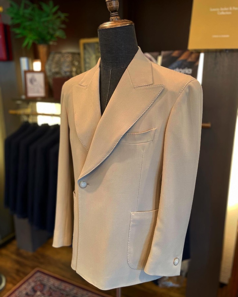 ビスポークだからできる遊び心のあるダブル1つボタンジャケット。