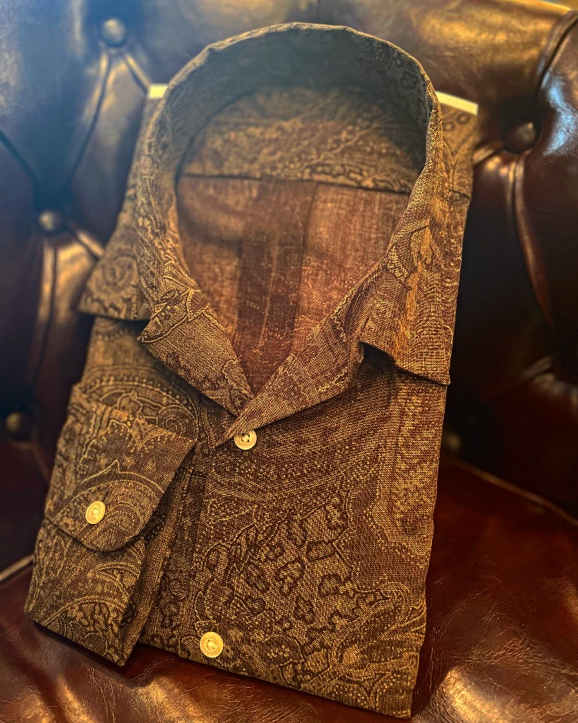 レトロなペイズリー柄とオープンカラーの雰囲気が◎