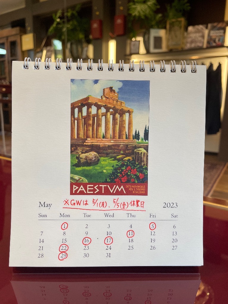 5月 営業日のご案内です。赤丸で囲われている日付が休業日となります。※買付、出張により営業日が変更になる可能性が御座います。ご来店の際はご予約いただけますと幸いです。皆様のご来店心よりお待ちしております。THE BESPOKE 加藤