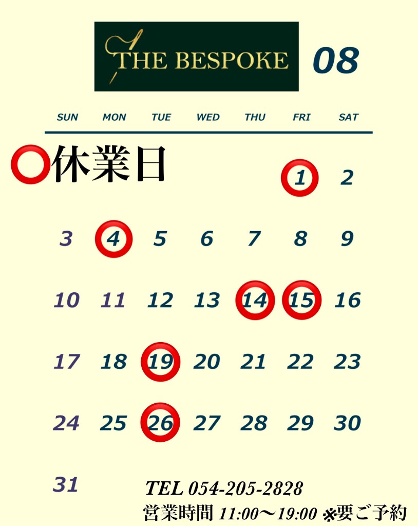 THE BESPOKE 【8月 営業日のご案内】